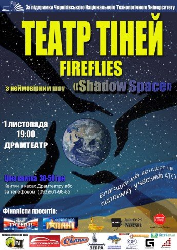 Fireflies - команда, работающая в жанре театра теней с 2010 г. Была создана из студентов Черниговского национального технологического университета. За время своего существования Театр теней Fireflies стал полуфиналистами телевизионных талант шоу "Україна має талант" и "Минута славы", финалистами польского шоу "Mam Talent".