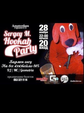 Очередная вечеринка от Sergey M. Hookah. Такого еще не было все коктейли -50% Sergey M. и команда барменов сделают ваш вечер незабываемым или забываемым )) развлекает mc Stas, заводит танцпол dj Squael, дымом обеспечивает Никита Турецкий )) фотографирует Спешилов ))