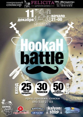 Всем привет!! Ну наконец то, пришло время одному из самых долгожданных мероприятий нашей премии! 11 декабря, в ночном клубе Gradeckiy пройдет ежегодный конкурс лучшего Кальянщика - Geometria Hookah Battle 2014, около 15 лучших кальянщиков нашего города будут бороться за звание лучшего накуривателя г: Чернигова))