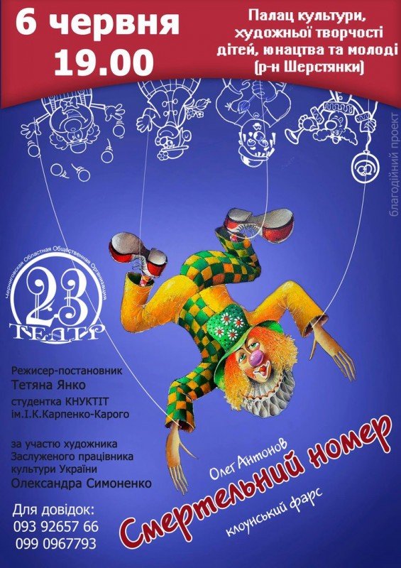 Вистава відбувається за підтримки: Палацу культури, художньої творчості дітей, юнацтва та молоді, Управління культури Чернігівської міської ради, Областної організаціїї "Театр "23"