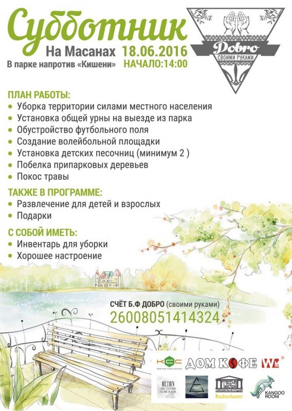 Мы уже делали первые шаги в улучшении нашего местного парка, что находиться на против супермаркета "Велика Кишеня". Был проведён субботник с целью уборки так называемой Лесополосы. В ходе уборки мы установили лавки, обустроили футбольное поле для наших детей.