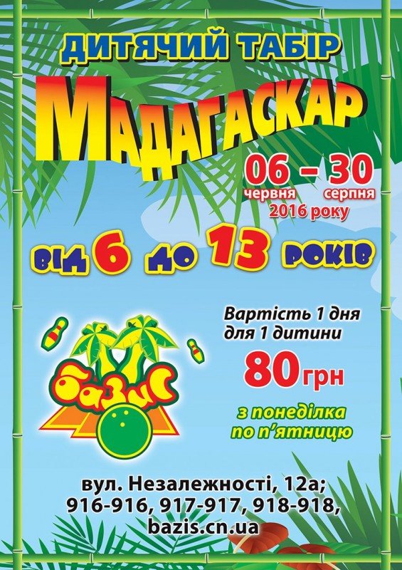 Так же напоминаем что лагерь открыт с 6 июля по 30 августа 2016г. с 10-00 до 17-00. Возраст маленьких посетителей от 6 до 12 лет. Стоимость пребывания одного ребенка — 80 грн./день.Подробности по телефонам: 916-916, 917-917, 918-918, 050-505-75-05