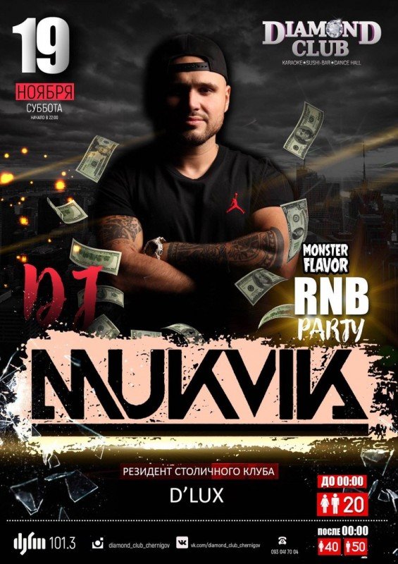 19 Ноября (Суббота) у нас в гостях столичный гуру RNB саунда и резидент модного киевского клуба D*Lux - DJ Mukvik