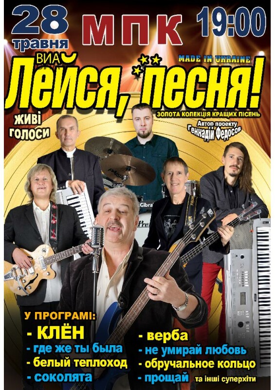 Абсолютно все песни представленные в концертной программе ВИА «Лейся, песня» ( «Родная земля», «Прощай», «Обручальное кольцо», «Песенка про сапожника», «Вот увидишь», «Кто тебе сказал») зрители помнят наизусть и поют вместе с артистами во время концертов.