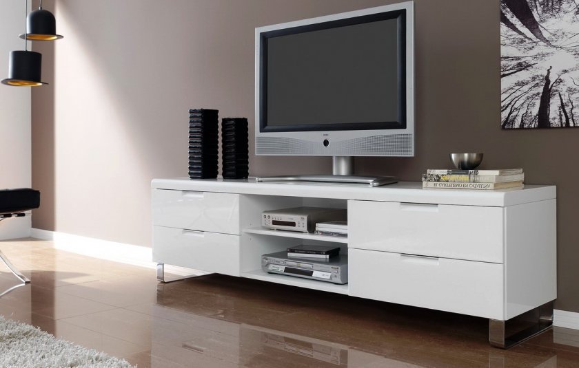 В гостиной тоже можно поставить небольшой телевизор, если сама комната тесная. К тому же помещение часто делят на зоны. В уголке для отдыха телевизор со средним экраном будет смотреться вполне уместно.