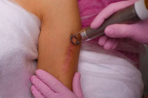 Наиболее эффективным для удаления рубцов является лазер. С этой целью применяют эрбиевые и фракционные лазерные аппараты. Шлифовка рубцовой ткани осуществляется поэтапно в рамках одной процедуры.