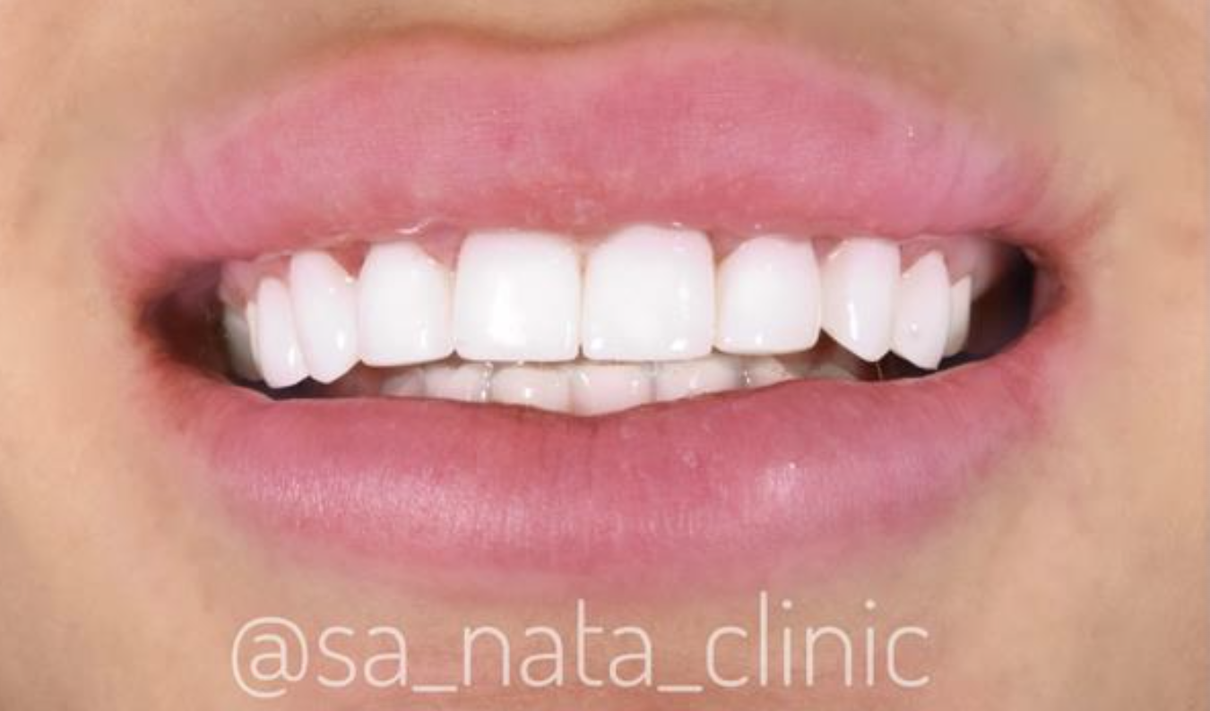 - Керамические виниры. Они представляют собой тонкие керамические накладки, которые приклеиваются на передние поверхности. Они позволяют скорректировать форму, размер и цвет, придавая улыбке симметричный и естественный вид.