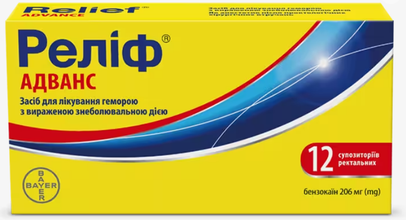 Свічки Реліф Адванс є ефективним засобом, розробленим з оптимальним поєднанням активних компонентів. Склад лікарського засобу забезпечує швидке полегшення симптомів геморою у дітей та підлітків. Препарат Реліф адванс містить активну складову – бензокаїн. Цей місцевий анестетик дуже ефективно заспокоює біль. Також для швидкості дії в склад введене масло какао. Його час плавлення при температурі людського тіла усього 4 хвилини (3), тому свічки і починають діяти так швидко.