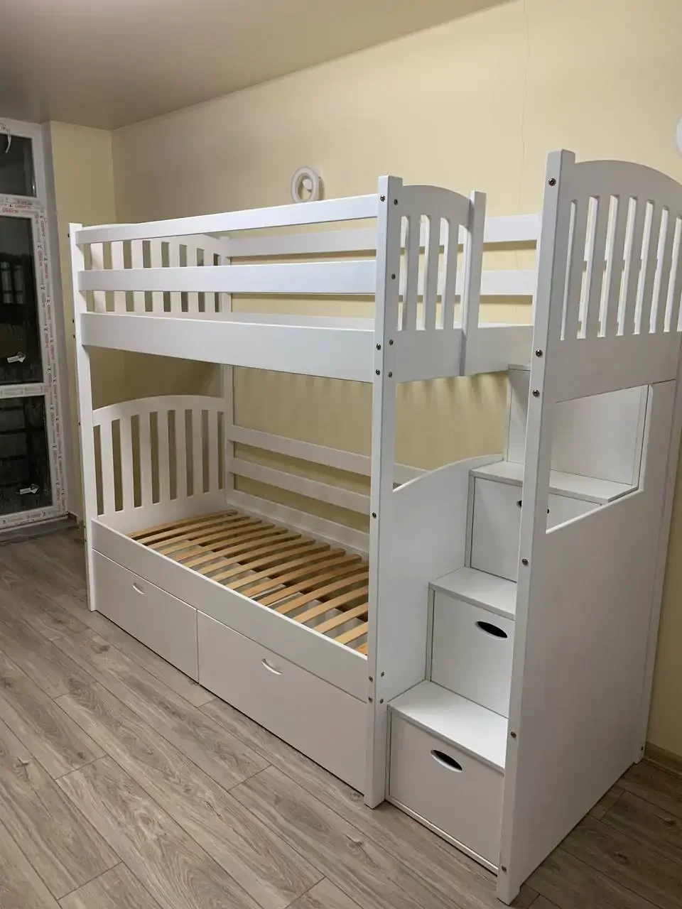 Горищні конструкції мають спальне місце на верхньому ярусі, а внизу знаходиться місце для занять та ігор, полички для книжок та іграшок. Багатоярусні ліжка розраховані на двох малюків.