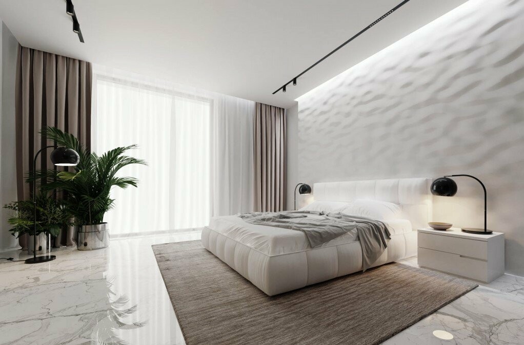 - Стиль інтер’єру. У класичних спальних кімнатах мають гарний вигляд натяжні стелі з декоративною вставкою або дворівневі конструкції з карнизами. У мінімалістичних чи скандинавських — ідеально працює однотонне полотно без зайвих елементів.