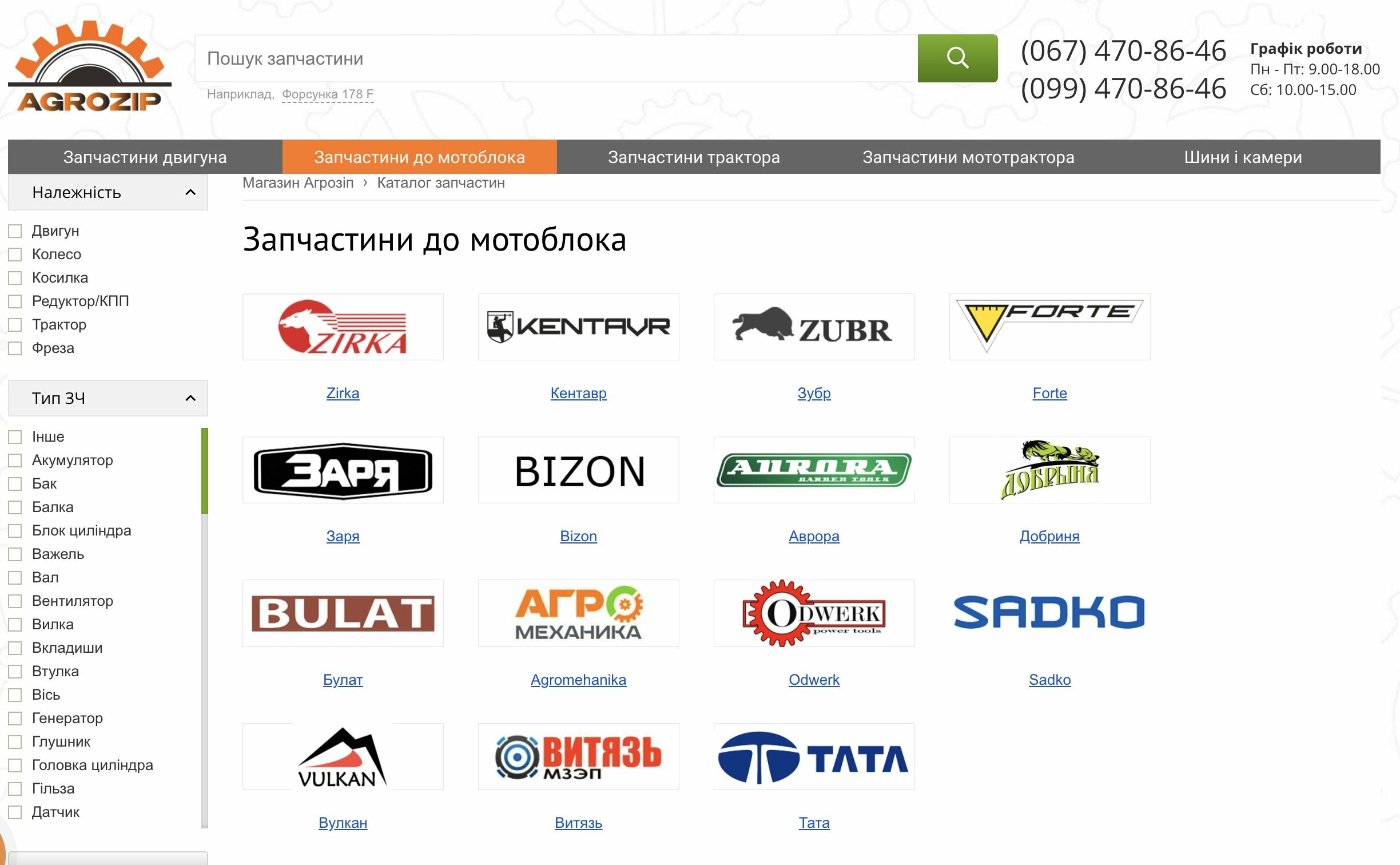 Замовлення онлайн в інтернет-магазині Агрозіп — це зручно та вигідно (5% знижка при онлайн замовленні). На сайті ви знайдете всі необхідні запчастини до мотоблоків із доставкою в Чернігів: