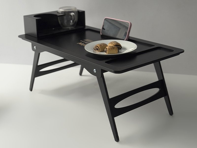 Сучасні розкладні столики для сніданку в ліжку поєднують практичність і стиль. Вони мають зручні ніжки, які легко складаються, тому столик можна зберігати навіть у невеликій квартирі. Такий варіант підходить не лише для романтичних сніданків, а й для роботи за ноутбуком, читання чи перегляду фільмів.