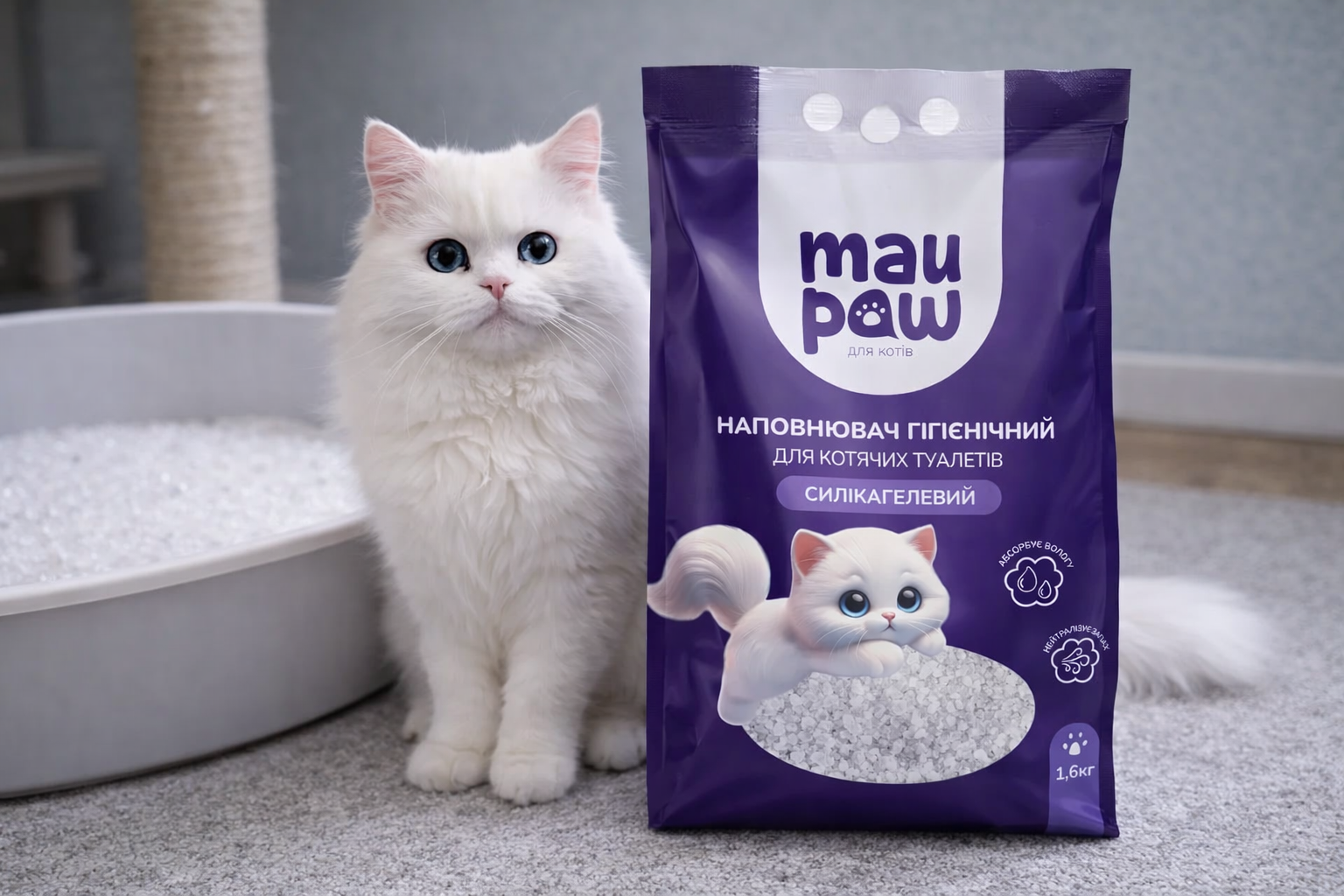 На етапі привчання до лотка важливо, щоб тварина почувалася впевнено. Силікагелевий наповнювач майже не утворює пилу та добре нейтралізує запах, що зручно для власників.