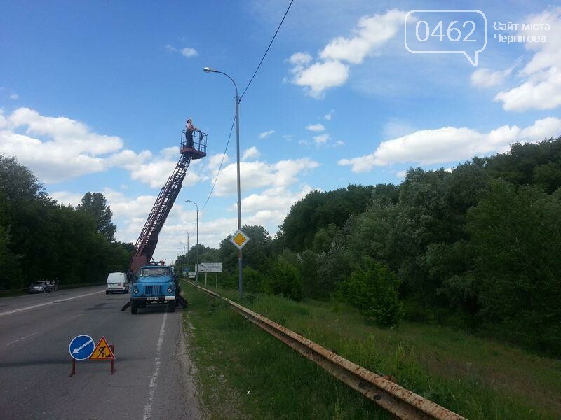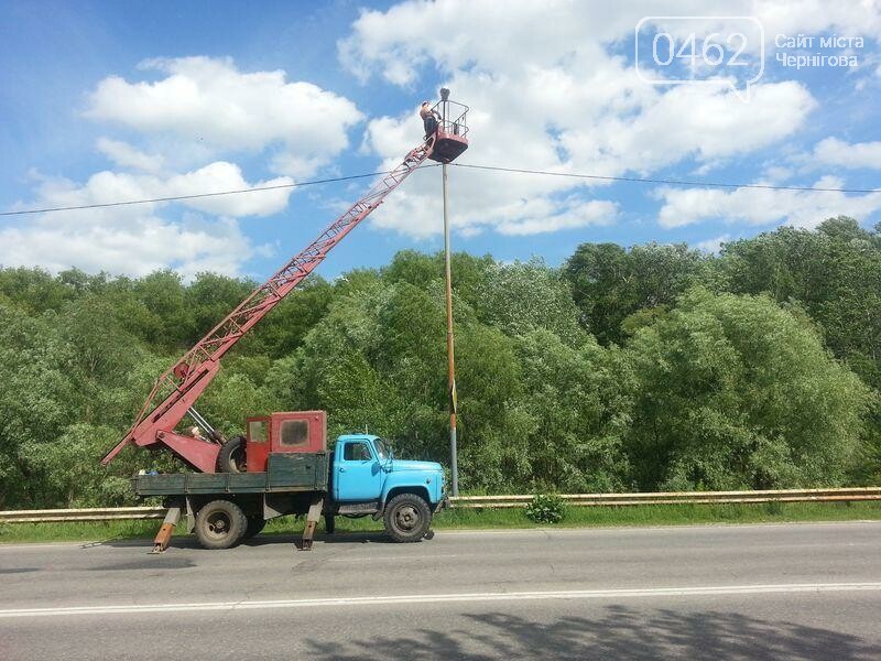 Сеть и опоры наружного освещения, установленные при въезде в Чернигов со стороны Киева, сейчас ремонтируют и приводят в надлежащий эстетический вид.