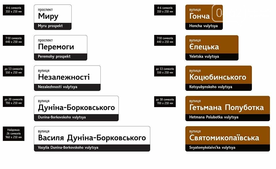 Таблички в черно-коричневых цветах предназначены для размещения в исторической части города Чернигова, таблички в черно-белой гамме будут монтироваться на других улицах.