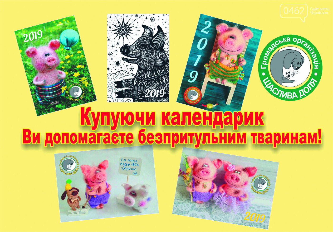 Зоомагазин «КУЗЯ» также проводит благотворительную акцию по продаже новогодних календариков с символом 2019 года – очень милыми свинками. Все деньги, вырученные от продажи, пойдут на помощь бездомным животным. Стоимость календарика – 10 грн. Их можно приобрести в зоомагазинах «КУЗЯ», «Кот и пес», «СуперZoo», ветеринарной клинике «Медцентр», а также арт-кафе Blinchiki.