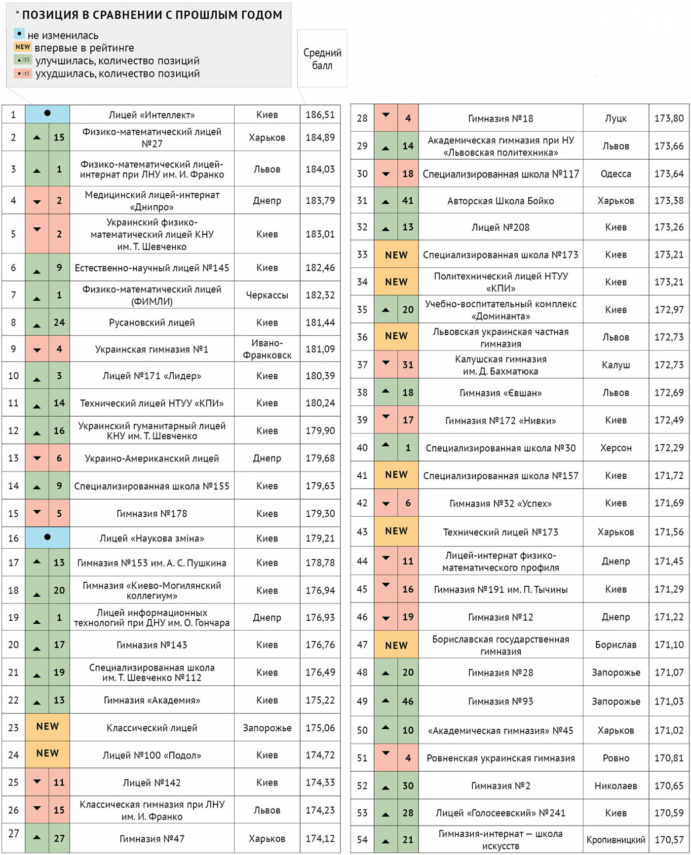 В цьому році список найкращих оновився на 32 %, але в ньому так і не з'явились навчальні заклади Чернігівської області.