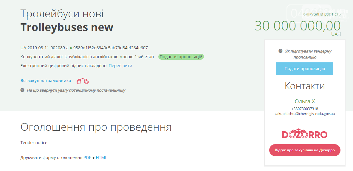 Хоч і не масове, але все ж таки оновлення парку ЧТУ відбудеться вже цього року. 11 березня оголосили тендер на закупівлю шести тролейбусів орієнтовною вартістю 30 млн грн. За умовами редукціону (аукціону навпаки – з пониженням ціни), тролейбуси мають надійти до КП «ЧТУ» з 15 травня по 31 грудня 2019 року.