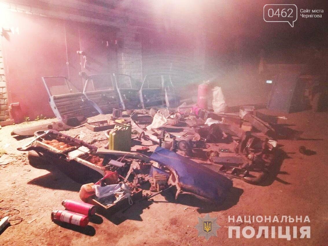 У гаражах, де банда переховувала награбоване правоохоронці знайшли, зокрема, автівки, запчастини, розрізані кузови, інструменти, крадене майно.