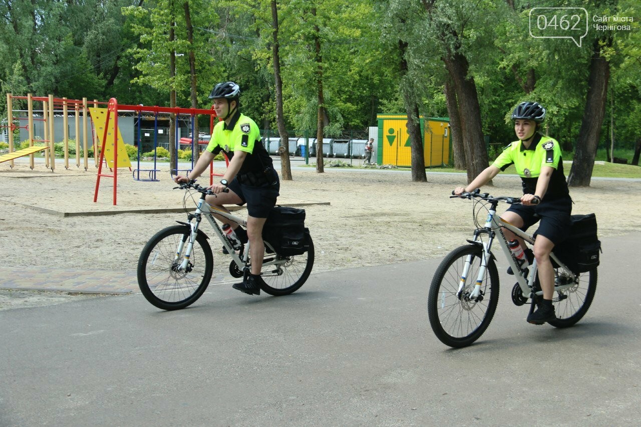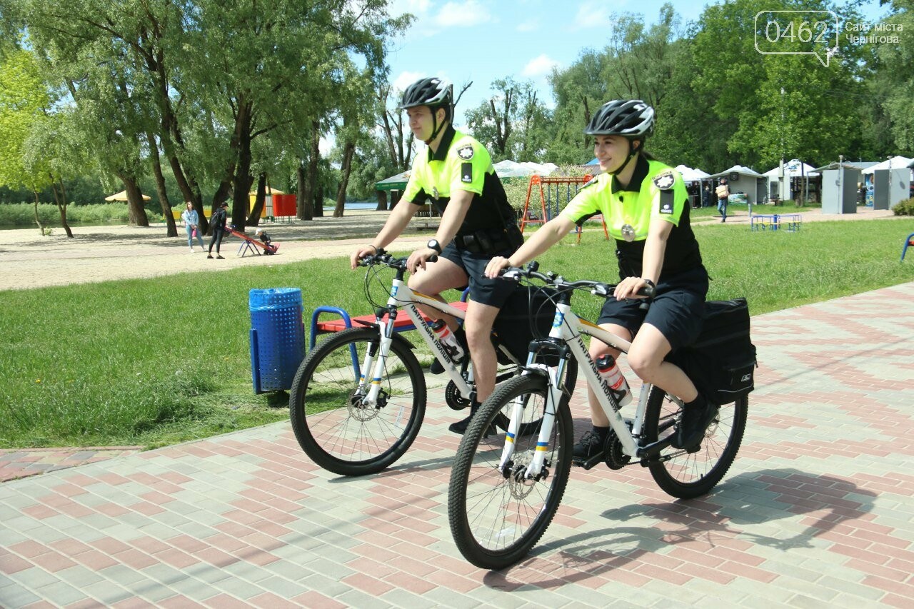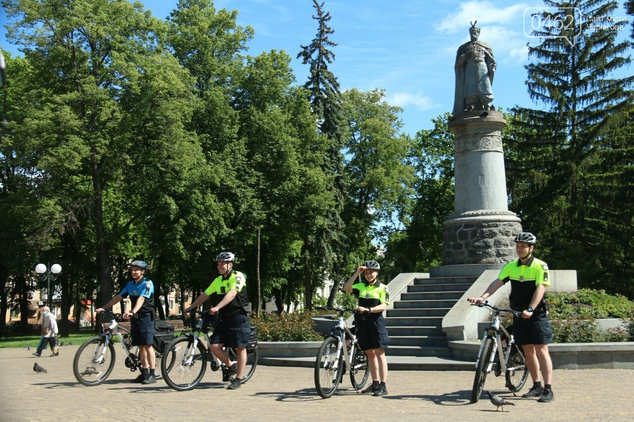 3 червня в Чернігові вийшли на службу перші два велопатрулі, кожен з яких складається з двох поліцейських. Почесне шикування та настанови від начальника Управління патрульної поліції Андрія Думича відбувалось у сквері імені Богдана Хмельницького.