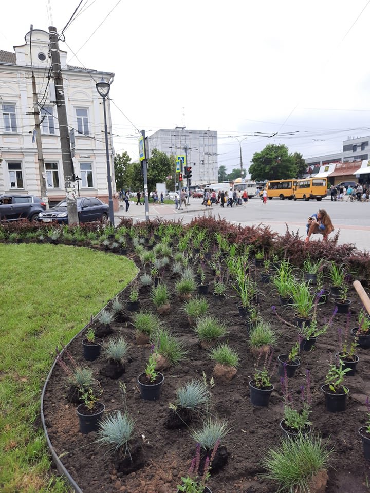 Багаторічні квіти та злаки, а саме: куничник, піннесетум, костриця та шавлія - з'явилися вчора в мальовничому сквері на перехресті проспекту Перемоги та вулиці Кирпоноса.