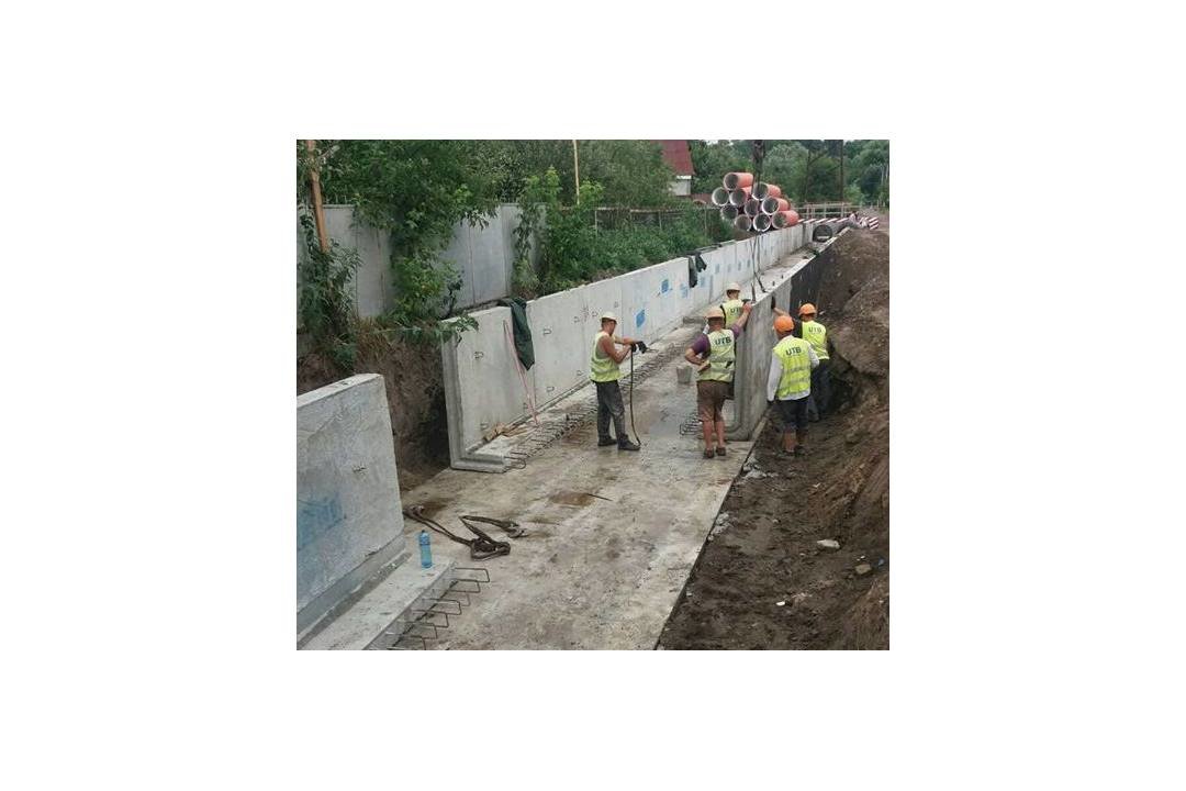 Одночасно тут же проводиться будівництво водовідвідного лотка. Він має чималі розміри: ширину 3 метри і глибину 1.5 метри.