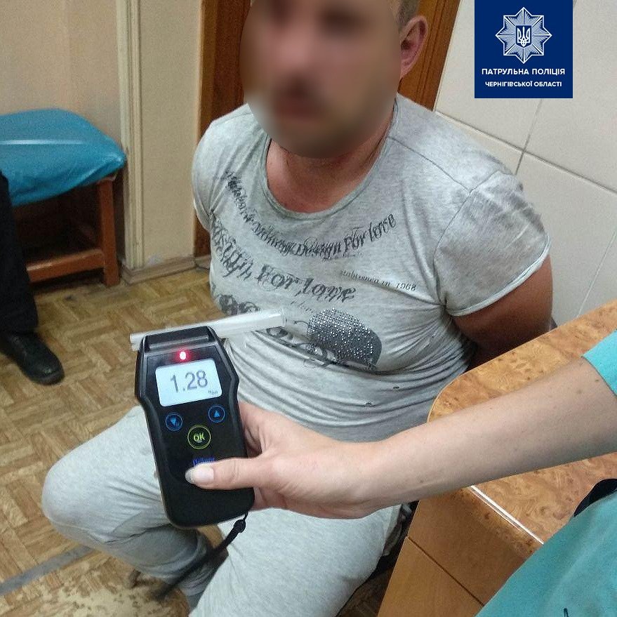 Як з’ясувалося пізніше, за кермом перебував 37-річний чернігівець. Під час спілкування поліцейські помітили у нього зовнішні ознаки алкогольного сп’яніння та запропонували пройти огляд у встановленому законом порядку. Спочатку водій намагався запевнити охоронців порядку, що не керував транспортним засобом. Коли громадяни, які були неподалік, підтвердили, що бачили, як авто їхало тротуаром, а за кермом була саме ця особа, став поводитися агресивно. Чоловік не реагував на зауваження патрульних та не виконував їх законних розпоряджень. Коли ж таки заспокоївся, погодився пройти огляд у медзакладі. Результат – 1,29 проміле алкоголю.