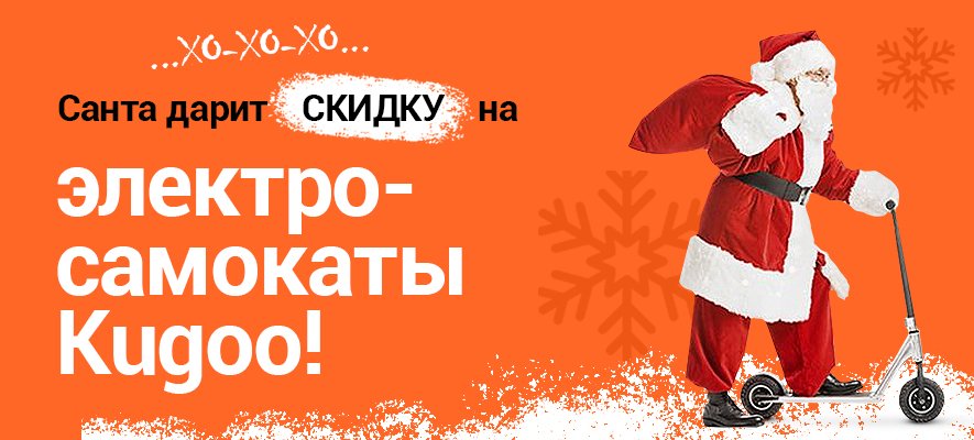 Если камнем преткновения для покупки электросамоката является цена, то есть хорошая новость – с 15 декабря по 30 декабря действует акция «Новогодний Sale на электросамокаты Kugoo»!