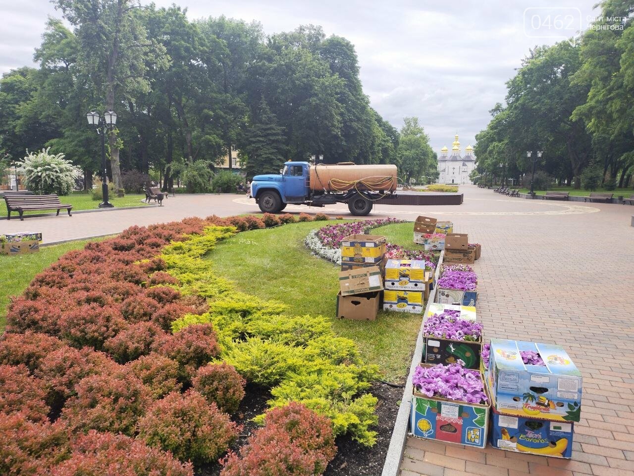 Навіть попри війну, Чернігів не відмовляється від заквітчаних клумб. Затишок у місті створюють працівники КП «Зеленбуд». Наразі вони висаджують квіти на Алеї Героїв.