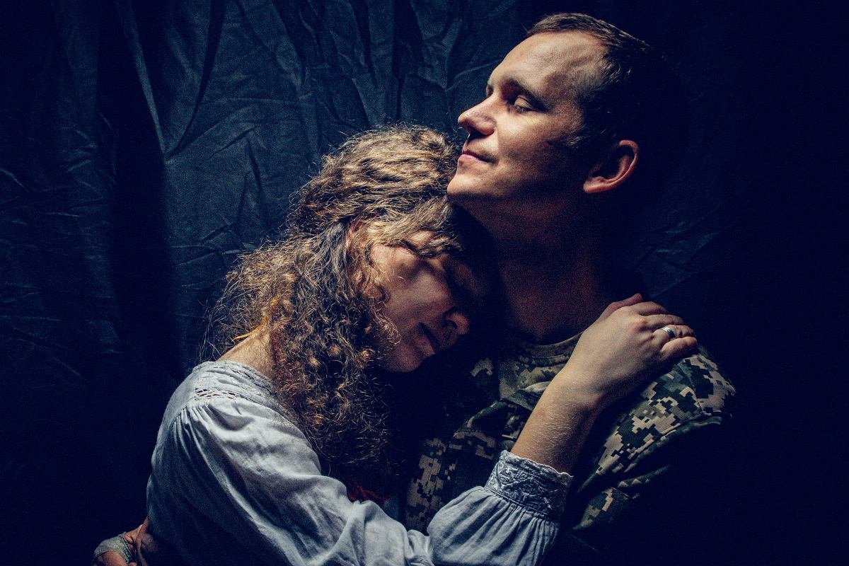 - Щоб проілюструвати цей матеріал, ми обрали роботу авторства чернігівського фотографа Романа Закревського. Він нас раніше фотографував ще у цивільному житті. А вдруге ми до нього прийшли, коли на мого чоловіка наїхав БТР і йому дали місяць відпустки на реабілітацію. Це був перший раз з початку повномасштабної війни, як Сергій опинився вдома. Тому, коли йому стало трохи легше, ми вирішили піти до Романа зробити нові фотографії.