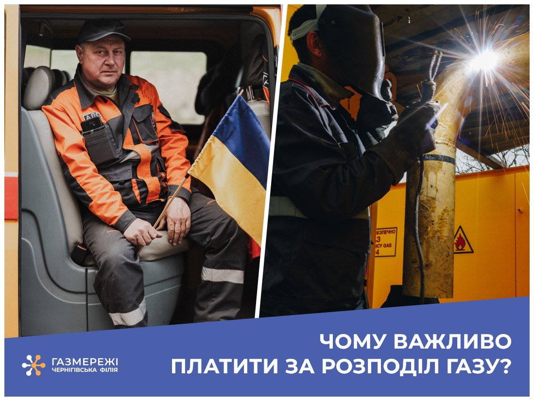 Довідка: З 1 грудня 2023 року розподіл природного газу споживачам Чернігівської області здійснює Чернігівська філія ТОВ «Газорозподільні мережі України». Компанія забезпечує природним газом майже 360 000 осель Чернігівщини, а система газопостачання області налічує понад 12 тис. км газопроводів та більше 2 тис. газорегулюючих пунктів. Окрім того, Чернігівська філія «Газмережі» надає послуги по встановленню та обслуговуванню газового обладнання, здійснює проектування та будівництво нових систем газопостачання, а також модернізацію існуючих. Забезпечує цілодобову роботу аварійно-диспетчерської служби 104. Основний пріоритет підприємства – комфорт та безпека споживачів блакитного палива, безаварійний та безперебійний розподіл газу 24/7.