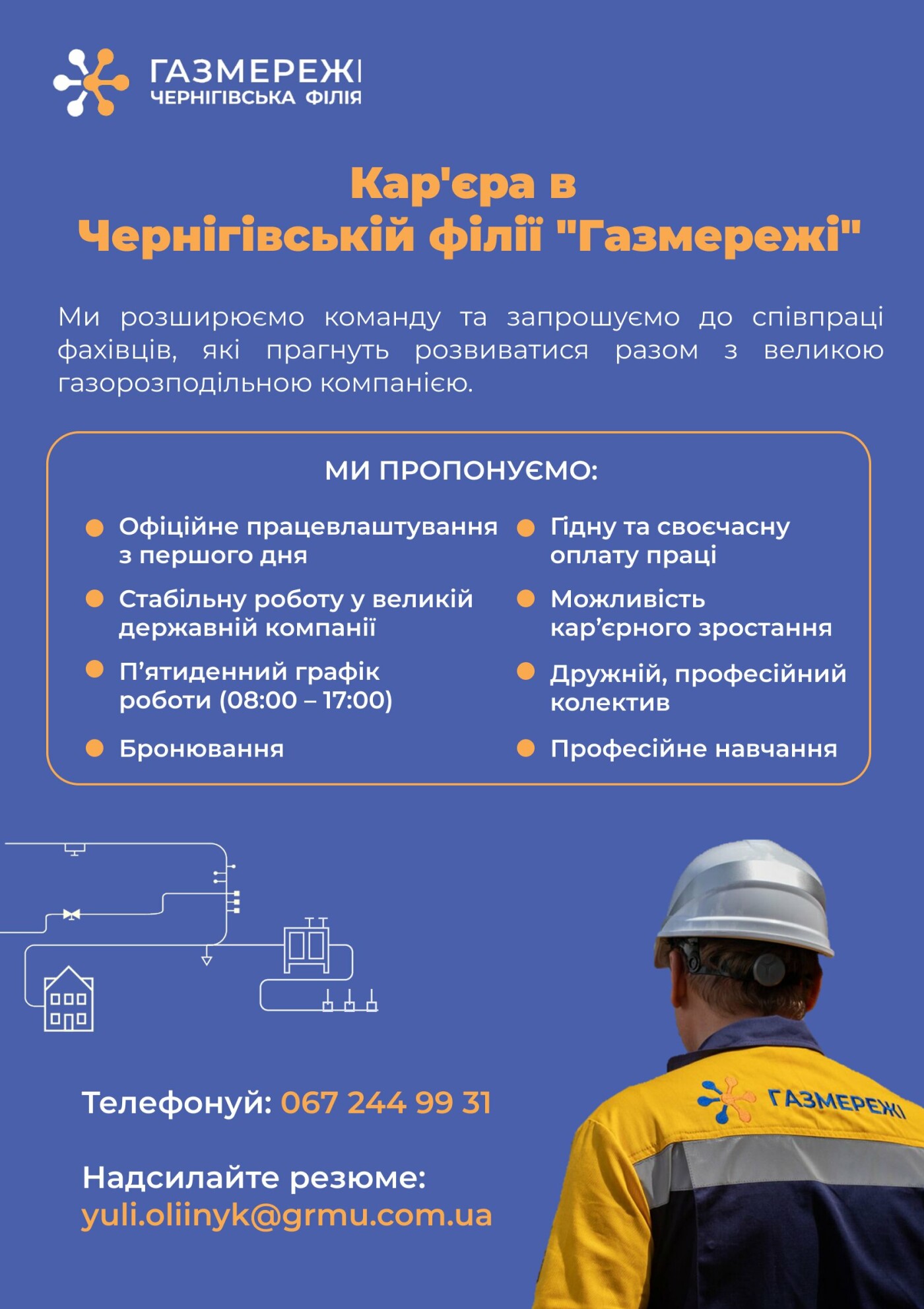 - Контролер газового господарства (Чернігів, Ніжин, Прилуки, Корюківка)