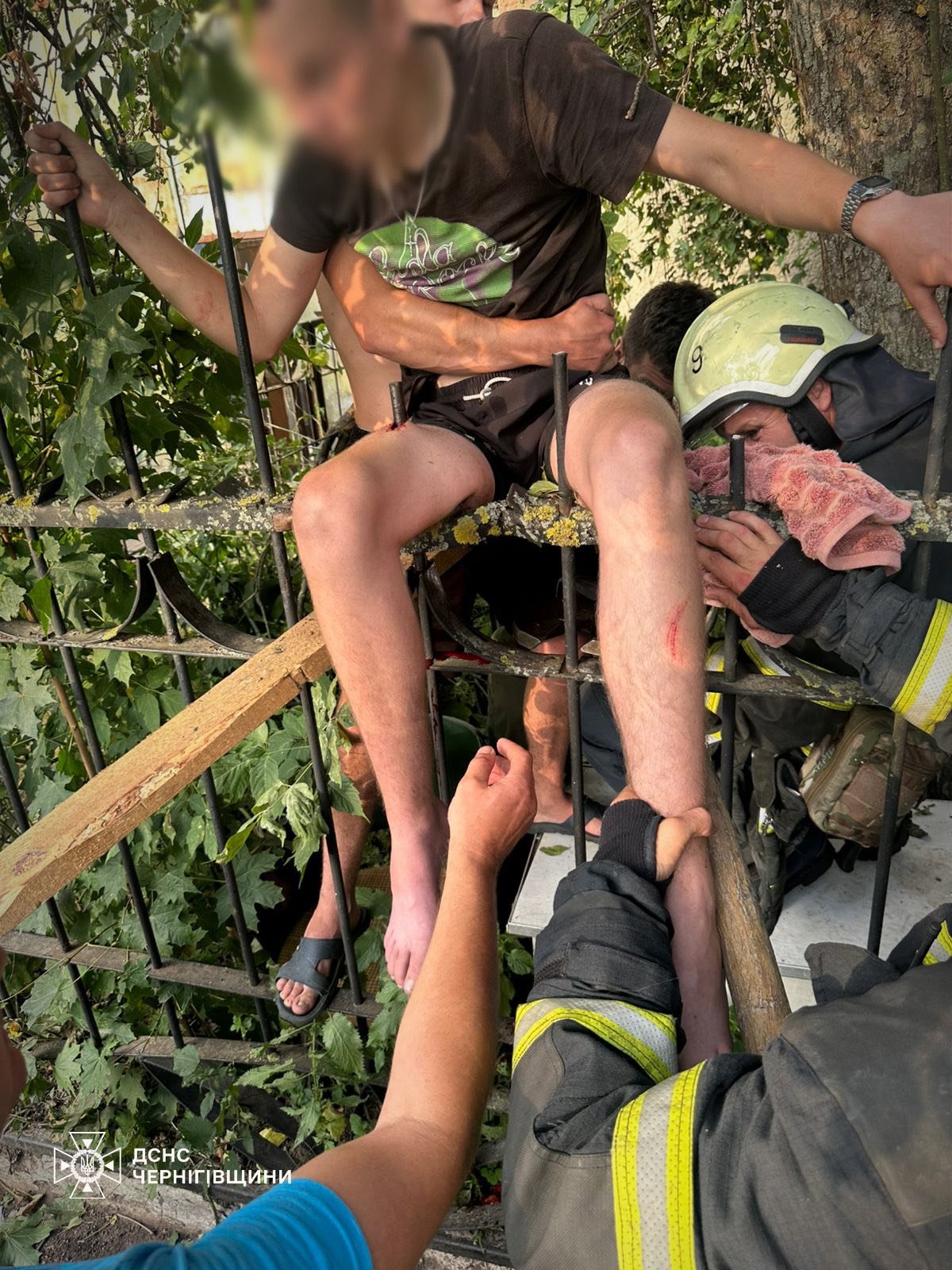Ввечері 31 липня у селищі Короп Новгород-Сіверського району на Чернігівщині 17-річний хлопець застряг на металевій огорожі. Він намагався залізти на паркан, але невдало – один з прутів наскрізь пробив йому ногу.