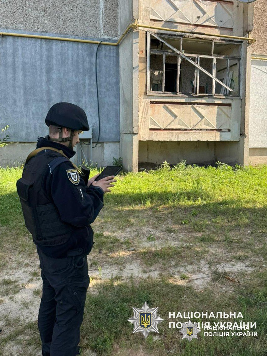 На місці працюють поліцейські, які документують наслідки обстрілу, збирають докази та фіксують руйнування.