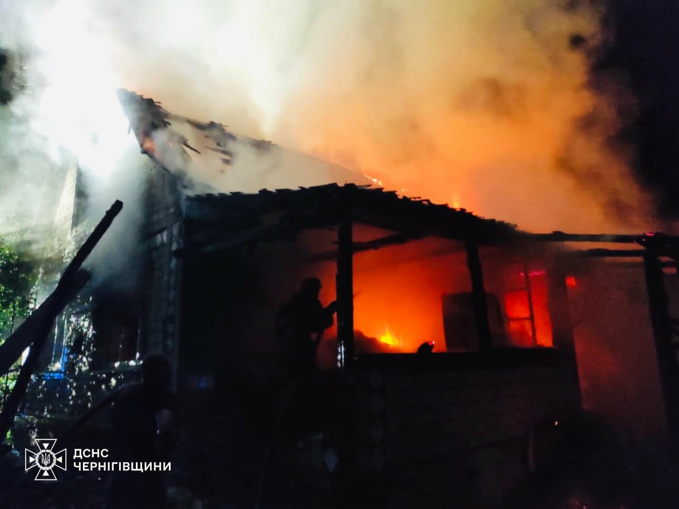 На Чернігівщині через атаку російського БпЛА загорівся житловий будинок