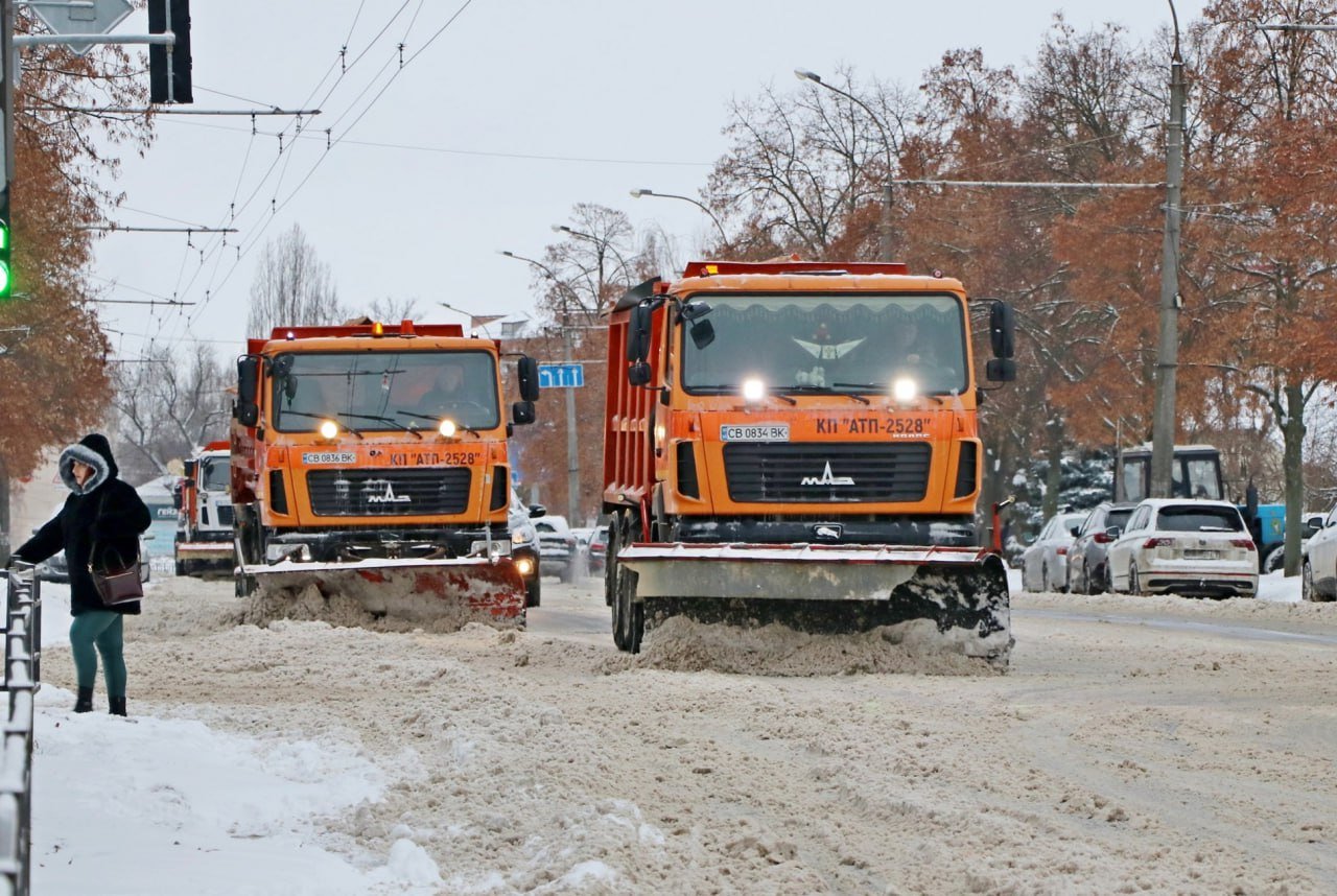У Чернігові 7 січня співробітники комунального підприємства та техніка «АТП-2528» проводять прибирання снігу на вулицях приватного сектору міста. До робіт також залучено техніку інших підприємств, зокрема грейдери, навантажувачі типу JCB, трактори Т-150 та іншу спеціалізовану техніку.