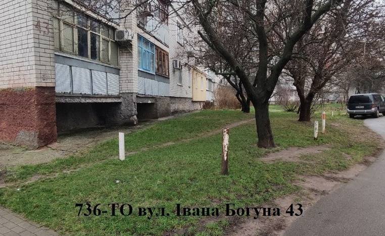13 металевих стовпчиків за адресою: вул. І. Богуна, поруч із буд. №43