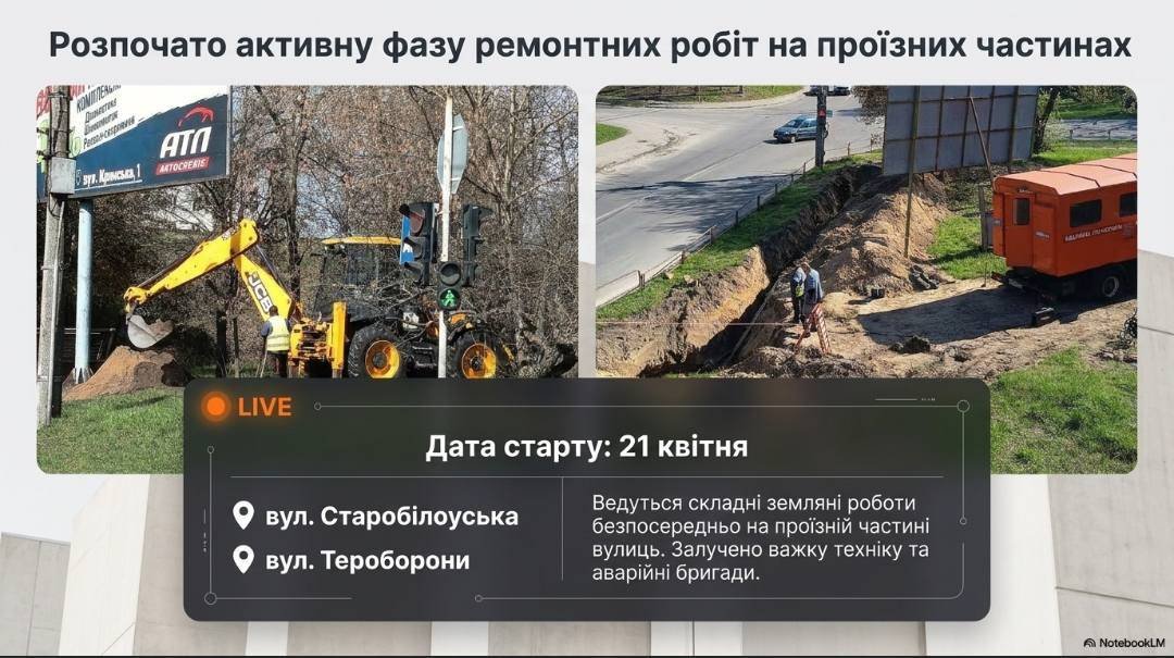 Зокрема, 21 квітня розпочато ремонтні роботи на проїзній частині по вулицях Старобілоуській та Тероборони. Одночасно триває відновлення водопостачання на вулиці Івана Франка – завершити роботи та подати воду планують 22 квітня.