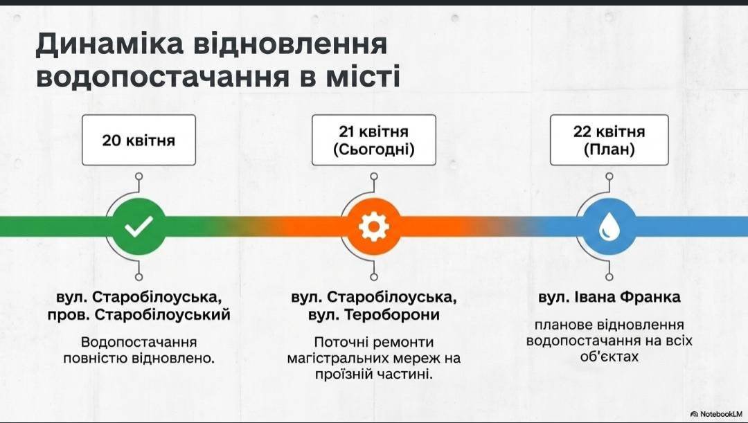 Водночас на вулиці Старобілоуській та провулку Старобілоуському водопостачання вже відновили 20 квітня.