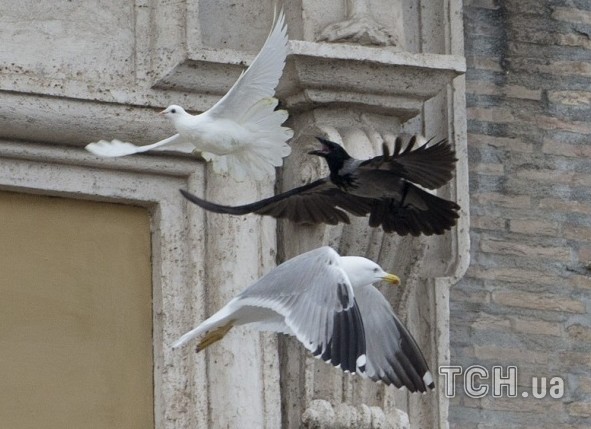 Ворон заклевал голубей мира, выпущенных Папой Римским после молитвы за Украину
